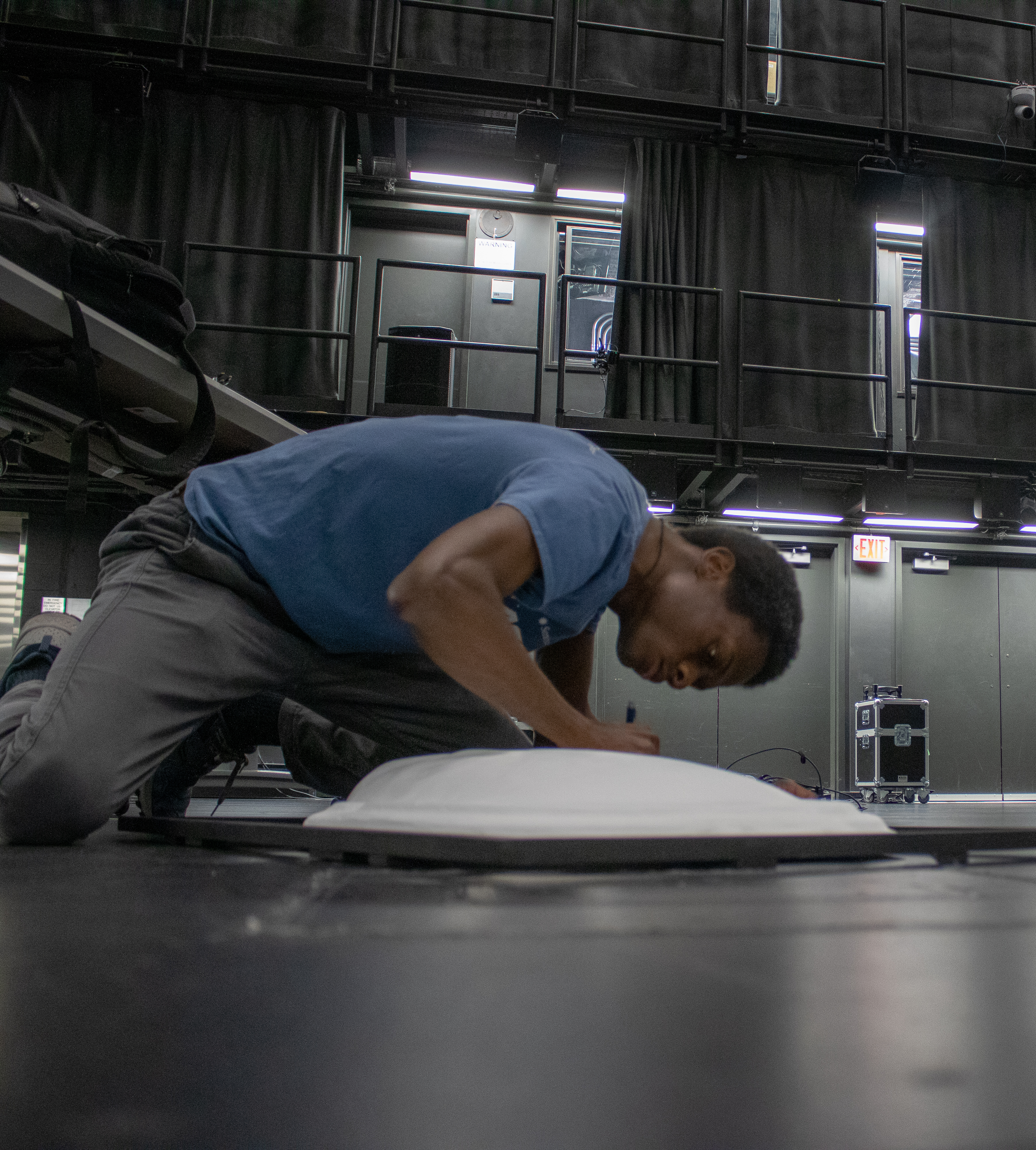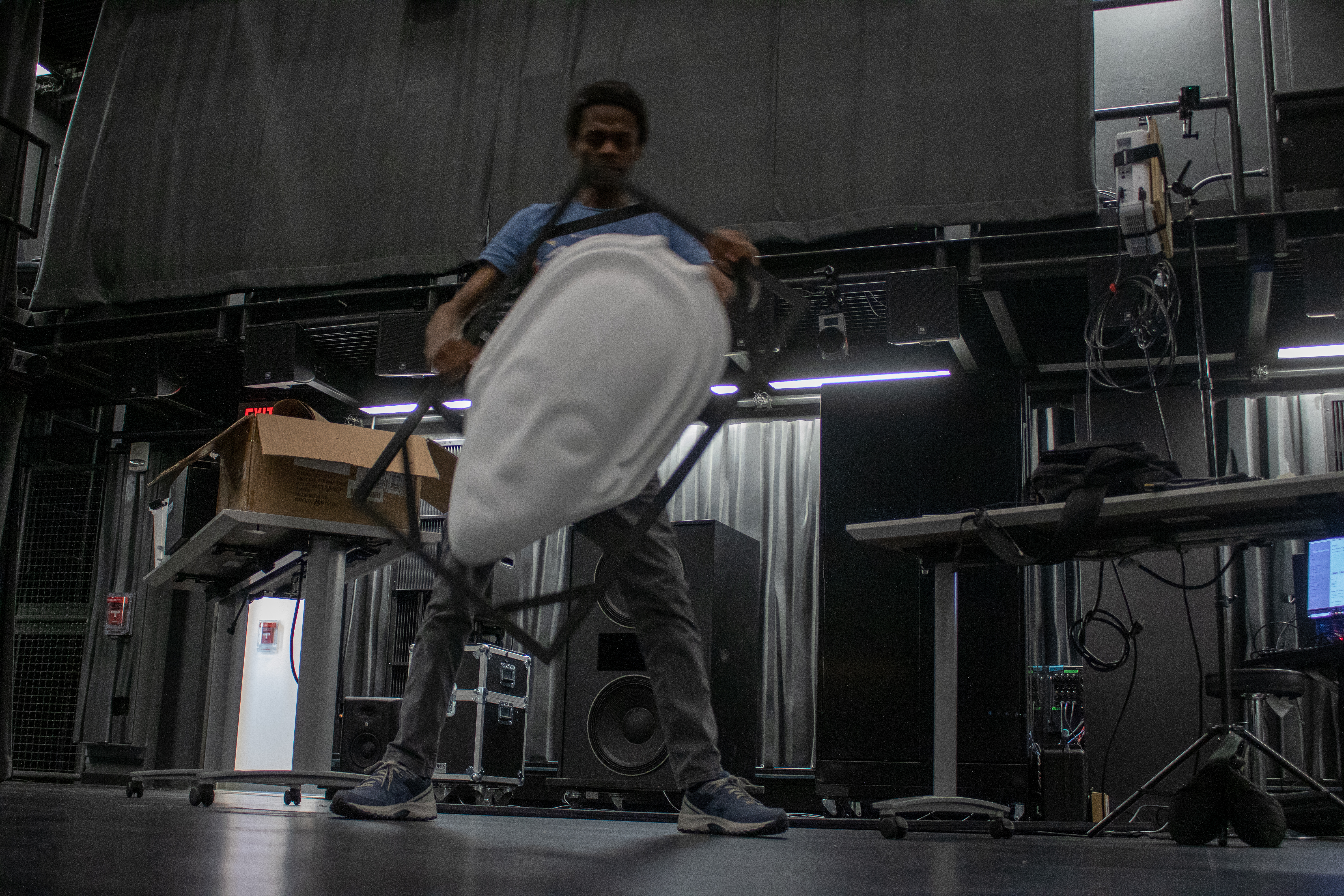 The project uses spatial audio and directional sound to deepen immersion. Environmental sounds (water, insects, birds) and the voices of objects are placed in space so they can only be heard from specific locations. Sound becomes another way the artifacts “speak” to the visitors.Through the use of a holosonic speaker the mask's monologue is isolated from the rest of te exhibit.